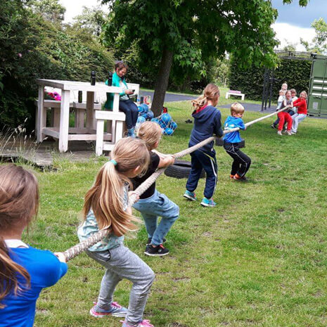 Het feestje gaat met slecht weer altijd door. Kinderen vinden het vaak nóg leuker wanneer er waterplassen zijn en wat modder is.